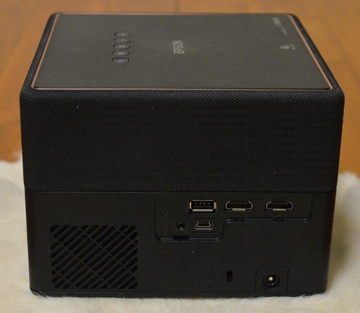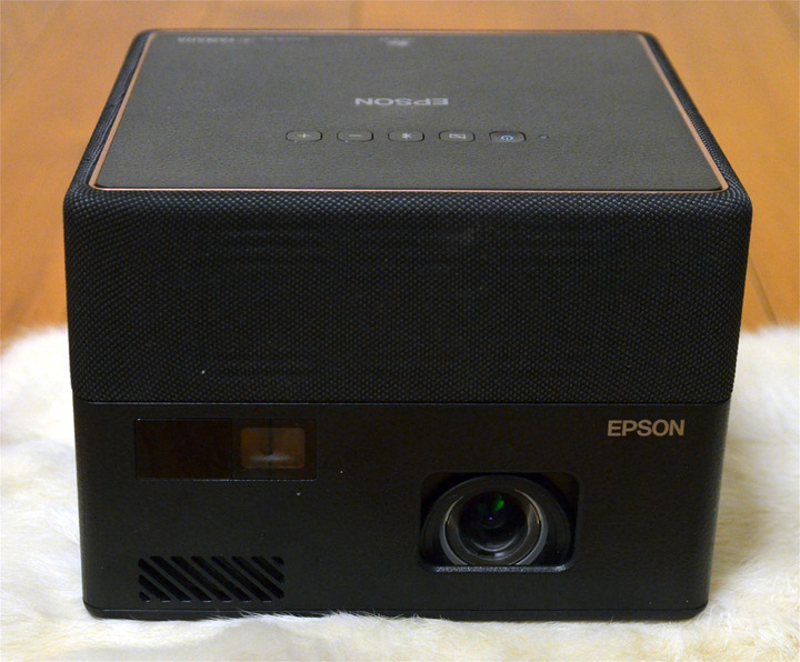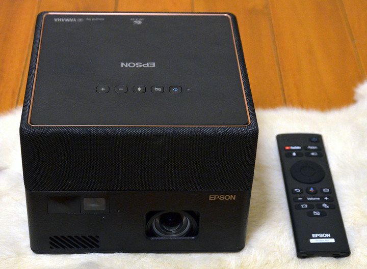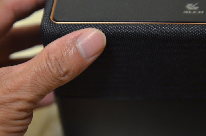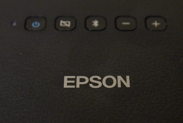 ▲ EPSON LOGO 上方左至右依序為電源、關閉/開啟螢幕待機、藍牙喇叭、音量縮小與放大5個實體按鍵。