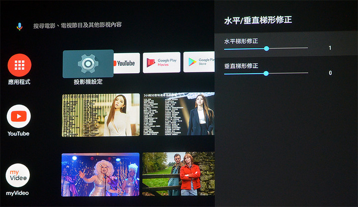 ▲ 假如不甚滿意,裡頭有手動水平 / 垂直梯形修正提供自行微調。