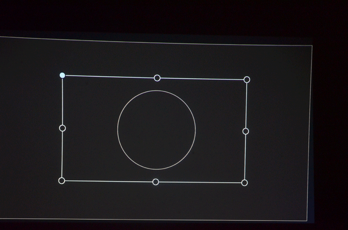 ▲ EF-12 比一般投影機還厲害的地方就是自對對焦設計,對焦速度快又準確,另外它還具備自動垂直、水平梯形修正的功能,這對空間不大、需用到側投的環境下,可說是一大利器。