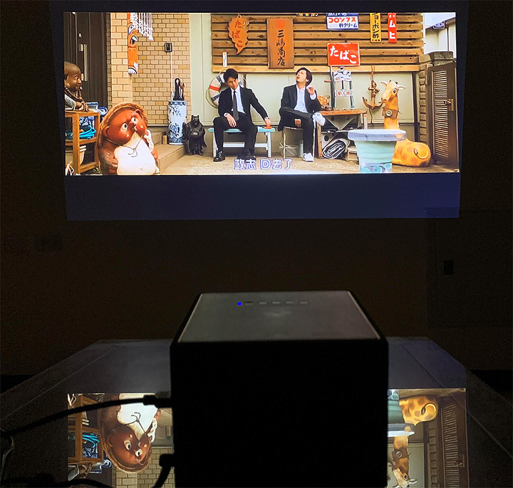 ▲ EF-12不只投射平面牆壁,就連天花板都可投放畫面,假如透過投影機吊掛架安裝在天花板時,畫面應該是顛倒的,這時可以透過投影方式的選擇。