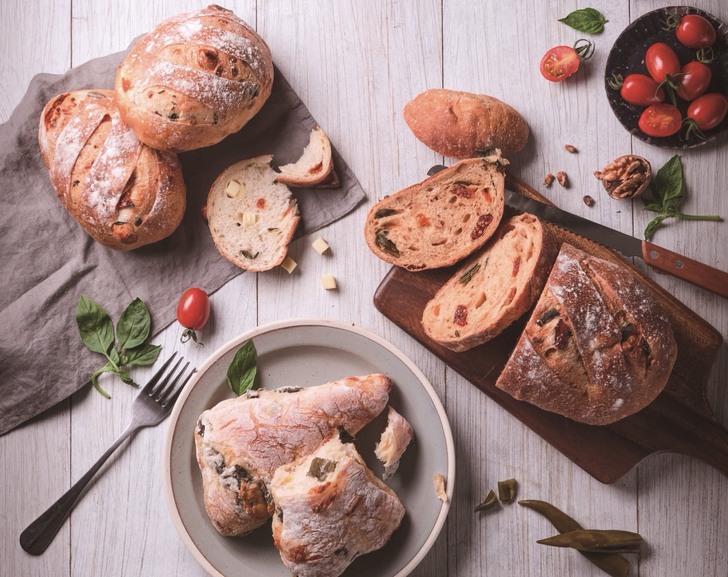 聯華製粉行銷部業務經理莊銀永表示,一般熟知的歐式麵包,大多以各式堅果及果乾揉入麵糰,相較於聯華製粉與樂田麵包合作開發的「歐滋味台灣味」歐式麵包,採用台灣在地食材且大膽創新,嚴選「聖女番茄乾」及花東縱谷百香辣椒製成的「剝皮辣椒」,研發推出「番茄九層塔起士」、「微辣蕃茄核桃」、「剝皮辣椒雙起士」等三款系列歐式麵包。口感上,略為烘乾的聖女番茄搭配起士丁與九層塔的「番茄九層塔起士」,唇齒間的果乾甜潤及九層塔芳香;「微辣蕃茄核桃」將聖女番茄乾及花東地區契作的剝皮辣椒攜手搭配,鹹甜搭配深邃麥香的歐式麵包,讓人欲罷不能。將花東地區契作的剝皮辣椒及Mozzarella起士、切達起士融入低溫發酵18小時巧巴達麵糰的「剝皮辣椒雙起士」,口感Q彈又有份量。