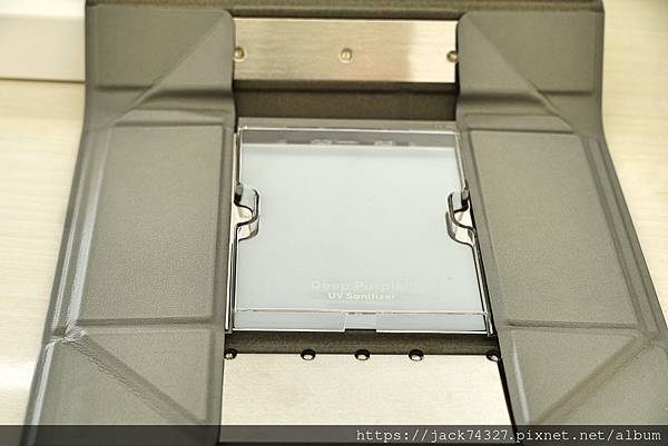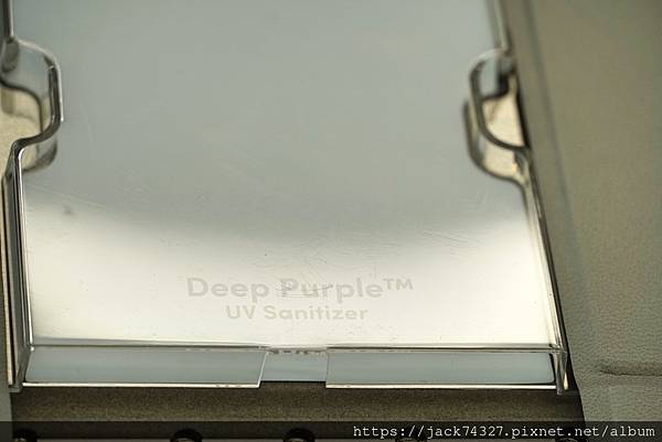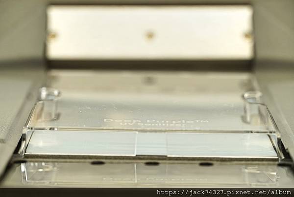 還沒有進行紫外線消毒之前,平台上的『Deep Purple』字樣會呈現白色,