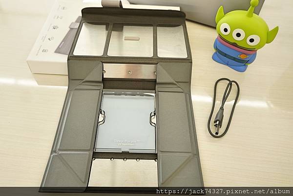 組合的方式也非常簡單,打開消毒盒,把兩側的摺疊向外拉,接縫處就會有「磁鐵」設計吸住,