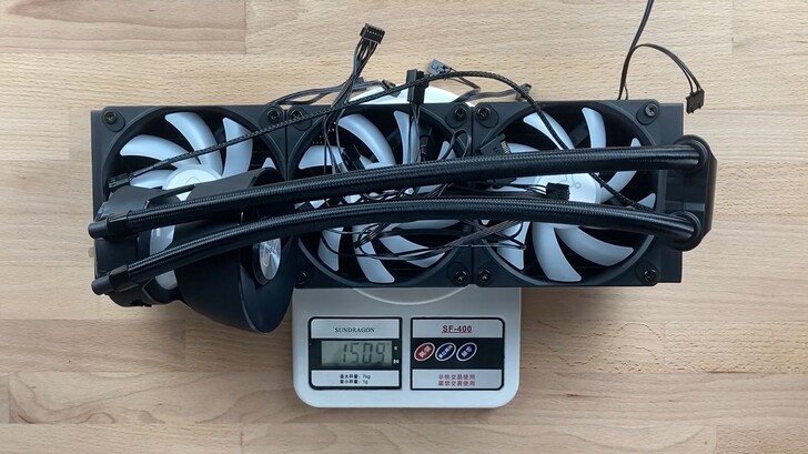 雖然說水冷頭特別大,但是整體重量大約 1509 公克而已。並不是這次測試的水冷之中最重的。