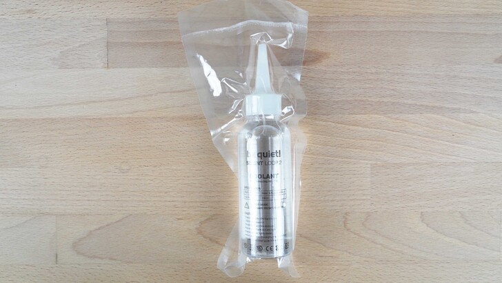 特別的是包裝裡面還附贈了一罐水冷液,也是這次測試之中唯一一家有附贈水冷液的廠商,真的是非常貼心,也看得出德國人對於自己產品日後維護的用心。哪天聽到你的水冷系統發出潺潺水聲,可能是裡面的液體蒸發了導致有氣泡,就拿起這罐水加進去就可以自己解決故障了。