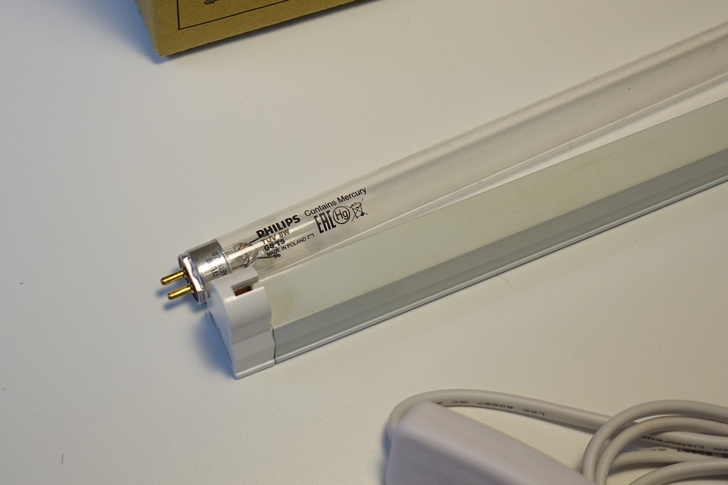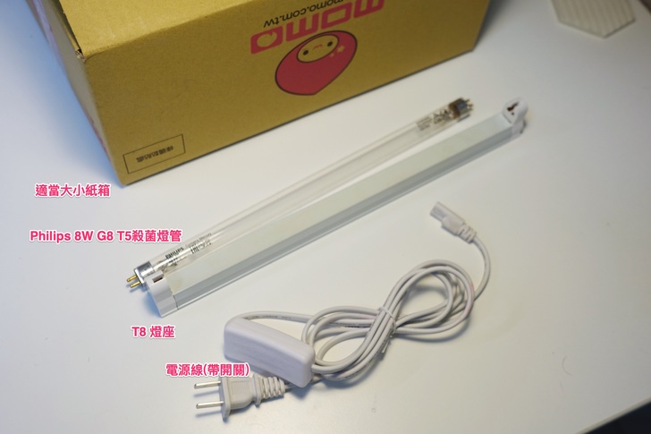 ▼ 需要準備的材料其實超簡單,買一個 T8 燈座帶電源線,以及 T8 紫外線燈管就可以了,燈管我選用的是 Philips 8W 的款式,全都可以在拍賣搞定。