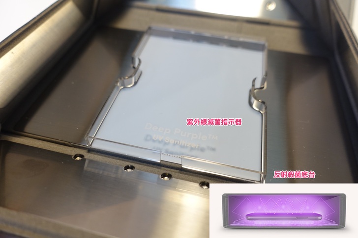 ▼ Deep Purple 內部採用的消毒燈與一般含汞消毒燈不同,Moshi 是使用不含汞 UV-C LED 燈,雖然相對於醫療用紫外線燈能力較弱,但整體更為是有效安全的消毒方式。