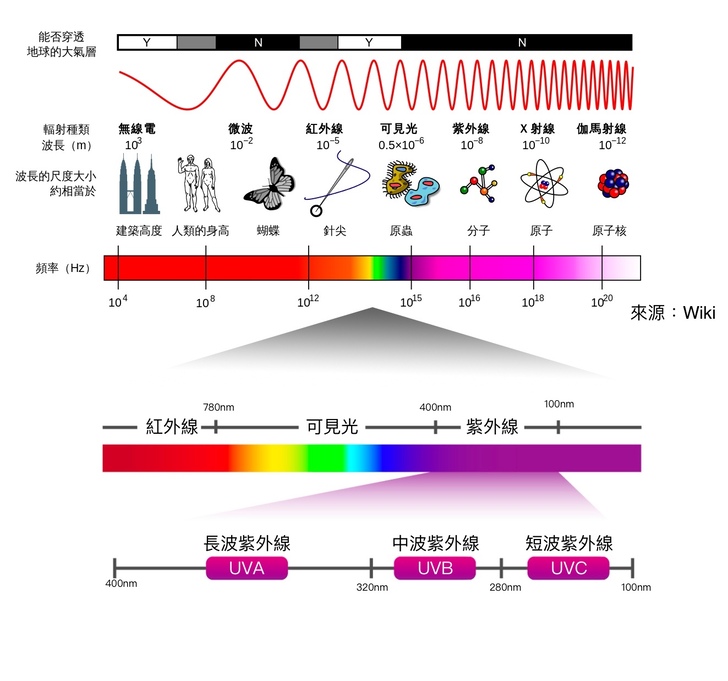 了解消毒盒之前可能要先認識紫外線,紫外線是指波長介於 10~400 nm 間的電磁波,而我們平常肉眼可視的可見光也是電磁波的其中一部分,但紫外線超過可見光範圍,無法用肉眼觀測。