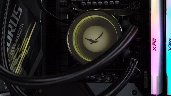 水冷頭燈亮起來時,視覺效果相當漂亮,有一種無底洞的效果。是我這此測試的所有水冷之中數一數二喜歡的。