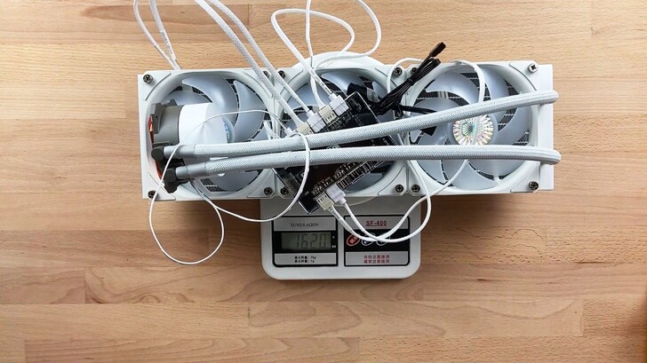 水冷整體加上集線盒之後重量為 1,620 公克。水冷整體的作工也並沒有什麼明顯的缺點,質感在這個價位帶上無可挑剔。