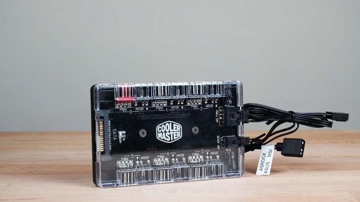 水冷裡面也內附了一個集線盒,把所有線接在一起,同進同出,對於新手來說,能減少任何一條設備連到主機板的線都是福音。當然其他家廠商也有風扇的三合一連接線,只是酷碼把它做成一個小盒子,感覺就比較高級。