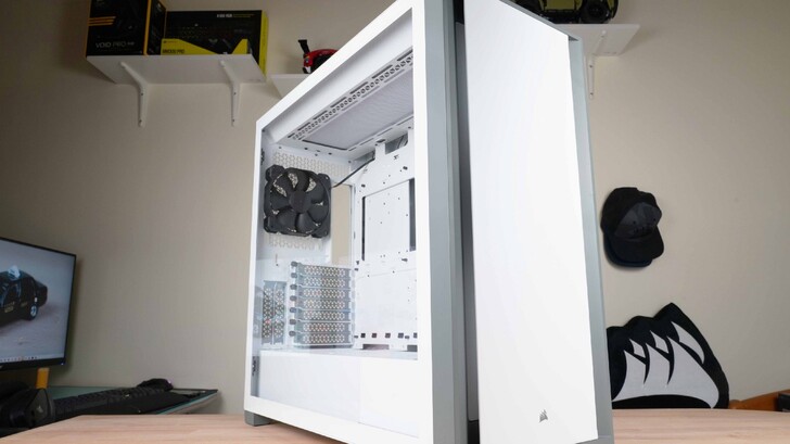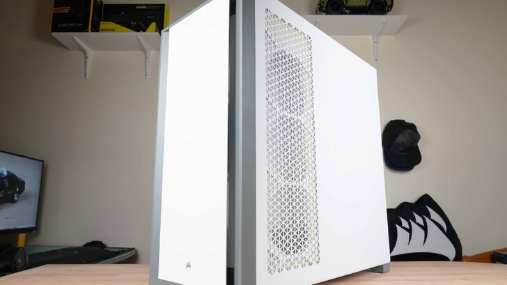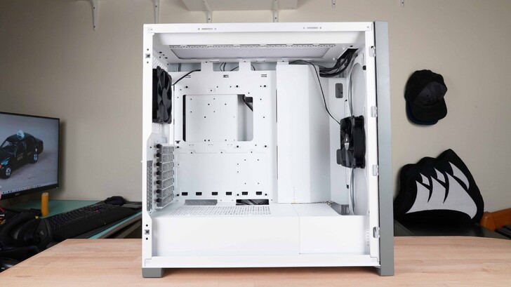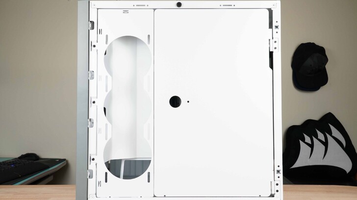 由於我們這次打算來測試各家 360 水冷,但是不巧的是市面上的裸測平台幾乎都沒有支援 360 水冷。那為了方便我安裝測試非常多款的水冷,機殼空間大一點、可拆解部位多一點的機殼總是比較方便,所以就選擇了海盜船的 5000D 來做為這次水冷評測所使用的機殼。機殼的左側是整面強化玻璃,想要展示帥氣的配備也是完全沒問題的。