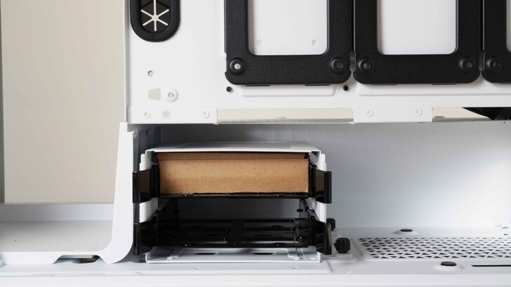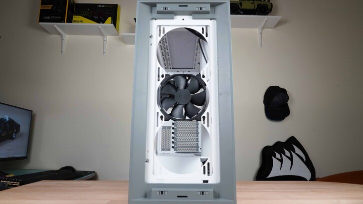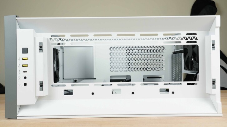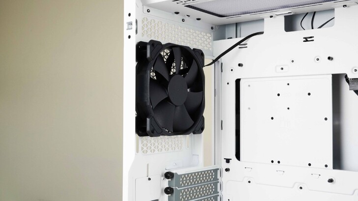 機殼內附兩顆風扇,預設情況是前面進風後面出風。風扇為黑色的,想要組全白主機恐怕需要自己另外買風扇。
