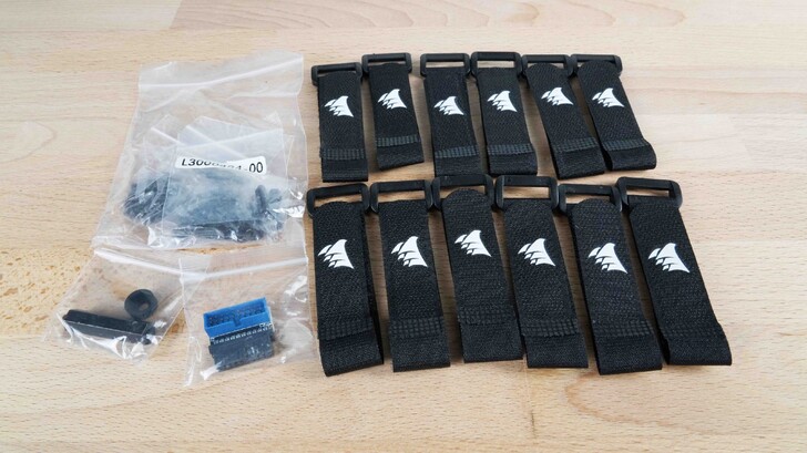 配件和裡面最讓我驚訝的是束線帶也給太多了吧!誠意真的超足。多到可以讓人拿去綁在其他地方當作廣告好像也挺聰明的。