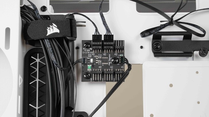 機殼上也自帶一個風扇的 1 對 6 集線器,機殼裝滿風扇也不用太擔心線沒地方插。