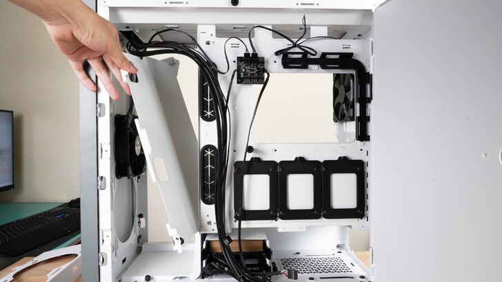 整線也是這個機殼的強項之一。這片板子真的是最強理線神器,只要蓋上通通看不到。像我這種眼不見為淨理線大法的愛好者,真的是太需要這片板子了。