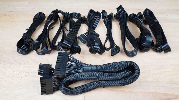 電源本身為全模組化設計,CPU 和 PCIe 供電接頭給得很足,假設一個設備佔兩孔,應付一顆 CPU 加上雙顯卡都還 OK。