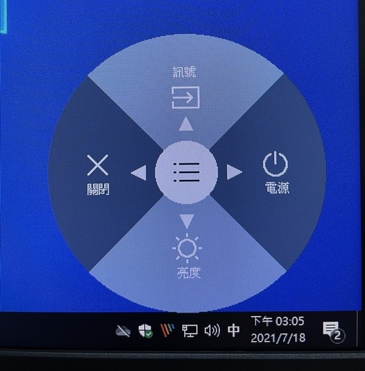 搖桿式選單按鈕可以選擇電源/關閉/亮度/訊號快速切換