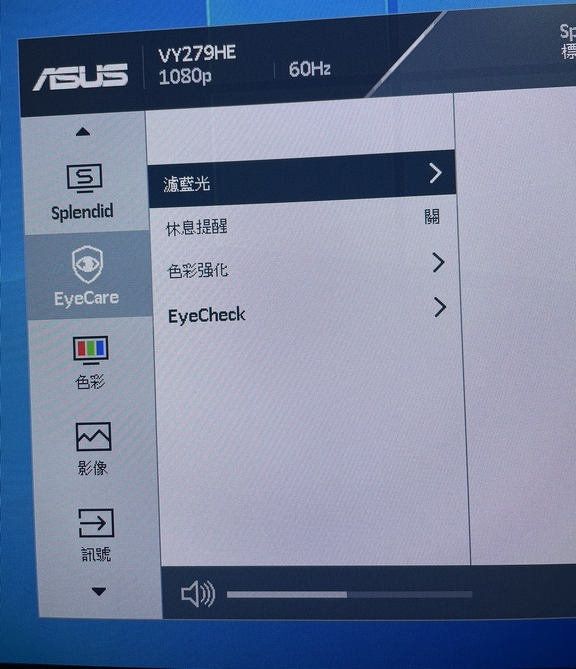 VY279HE 支援護眼功能以及多重色彩情境切換