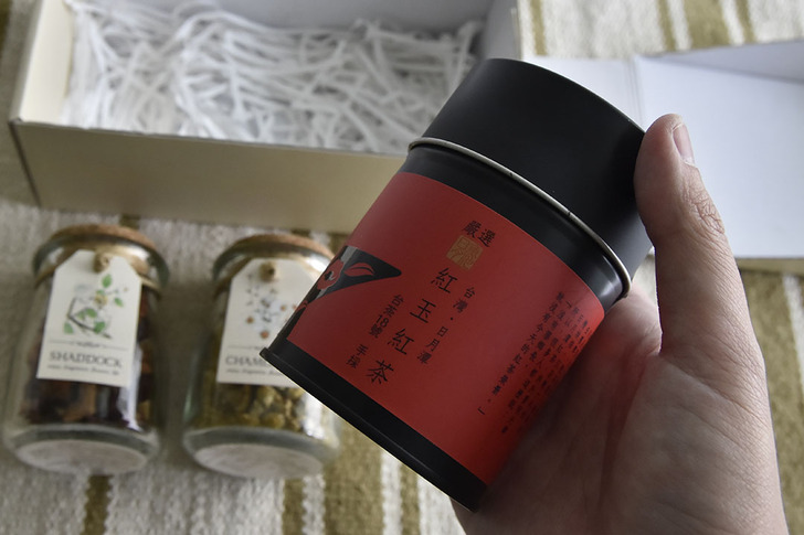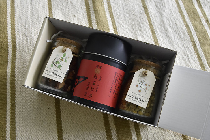 裡頭是一罐嚴選紅玉紅茶搭配兩罐花茶