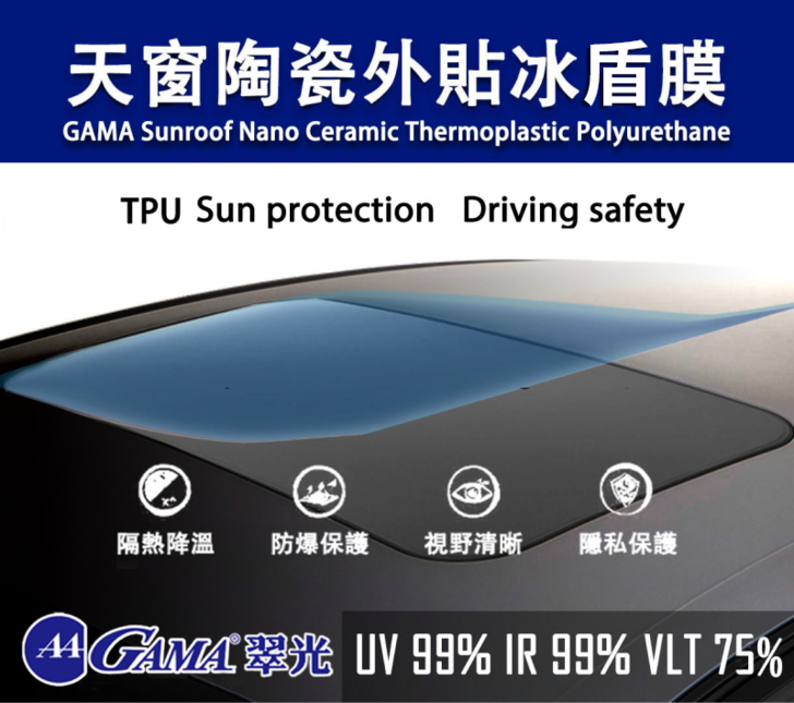產品:GAMA天窗隔熱外貼膜。