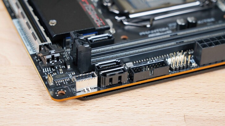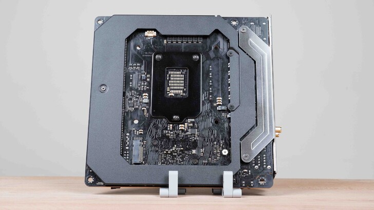 雖然是 ITX 小板,但卻有兩個 M.2 接頭,其中正面的 M.2 搭配到這次處理器的升級,是一條 PCIe 4.0 直連 CPU 的 M.2。而另一條 PCIe 3.0 的則是放在背面,如此善用空間,真是滿聰明的設計。
