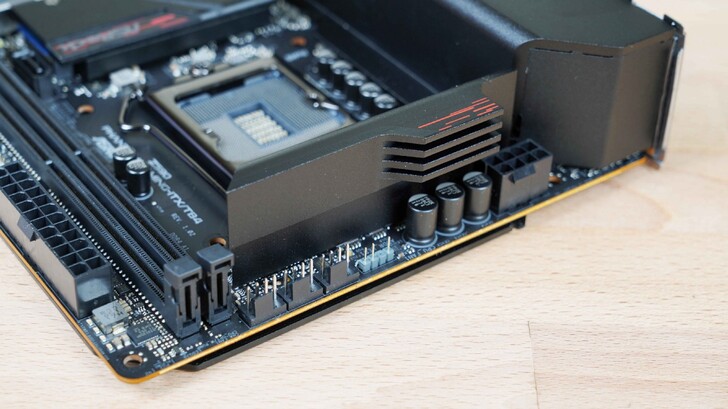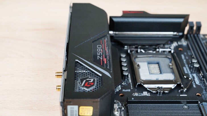 整個 I/O 區域用「防護罩」保護起來,CPU 供電也被壓在底下,藉由這個「防護罩」幫忙散熱。