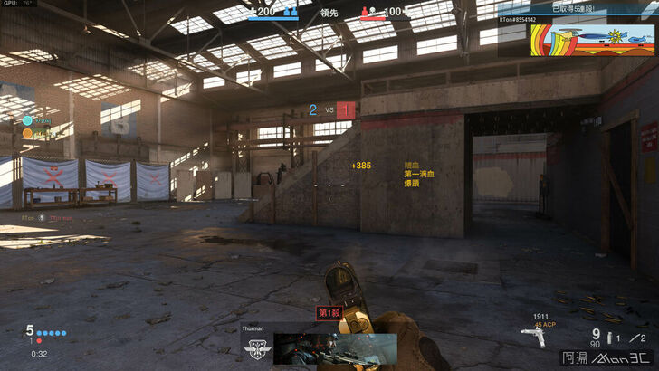 那實際遊戲時的體驗,個人覺得多了 Waves Nx 3D 音效以及頭部追蹤技術後,可以有效的提升聽音辨位的能力。首先音效卡本身就支援 7.1 音效,因此有些支援 7.1 音效的遊戲就可以將音效以 7.1 聲道輸出。以戰地風雲 5 來說這款有支援到 5.1 聲道,所以當有人從草叢冒出來要打別人時,就能比較精確的知道敵人的位置。