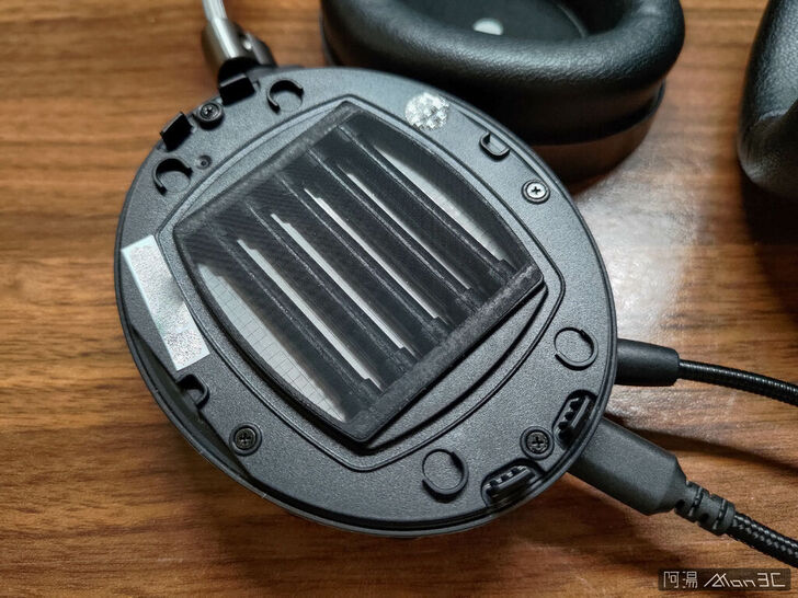 而藏在耳罩底下的就是這樣子很奇特的 100mm Audeze 平面磁性單體,號稱相比一般的喇叭能夠有著更強悍的低音表現。