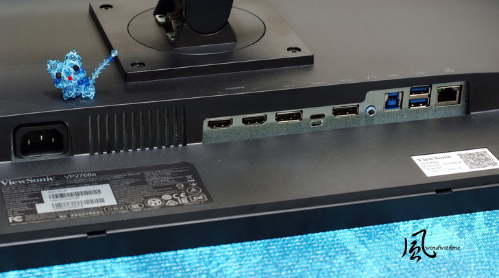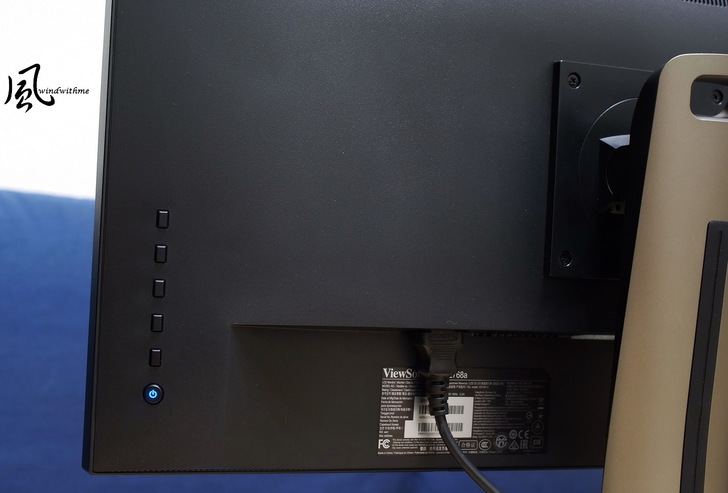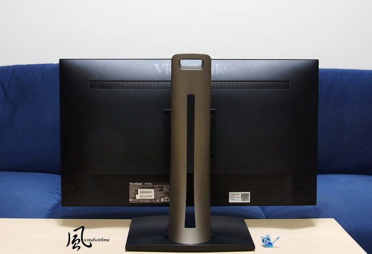 VP2768a背面外觀一覽,最上方為ViewSonic品牌標誌,其次是散熱孔位,