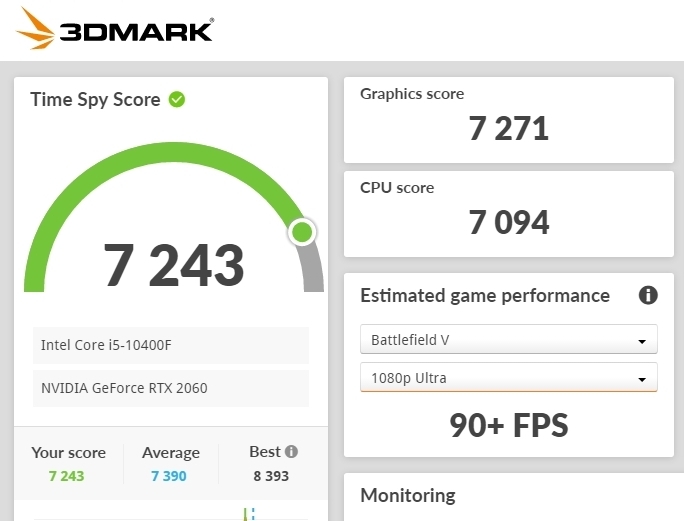 3DMARK TIME SPY 跟 RTX2060 比較 1080P