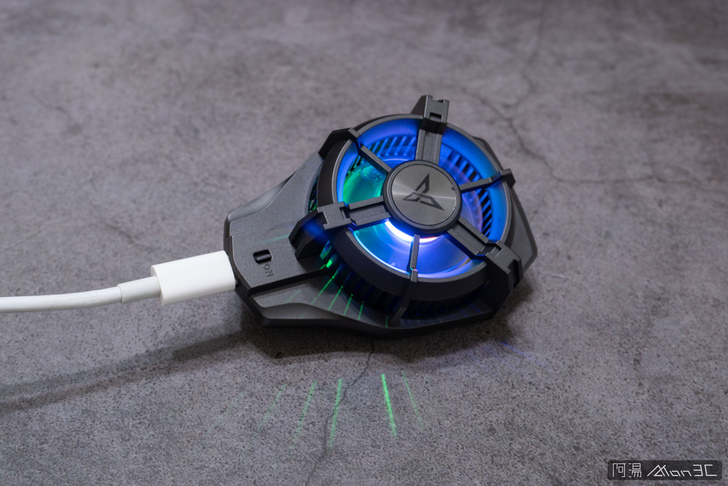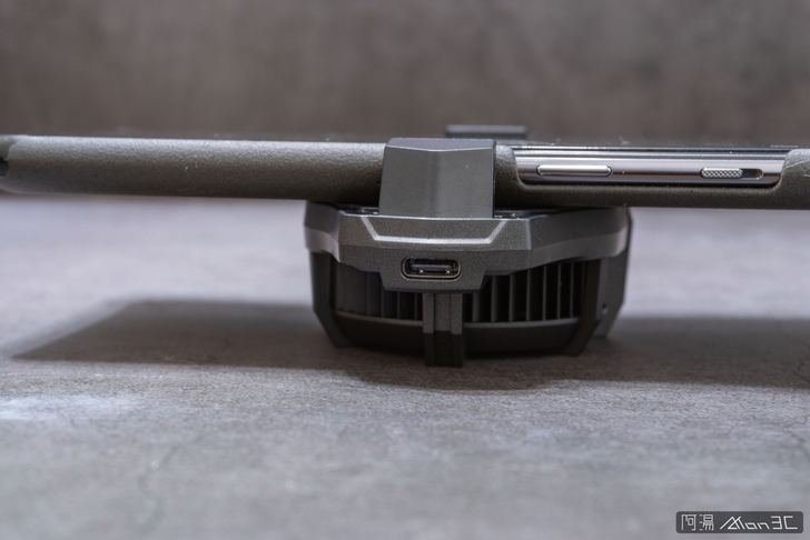 底部有著 USB-C 供電孔,由於風扇沒有自帶電池,因此需要隨時透過 USB 供電。