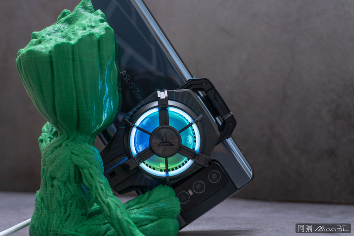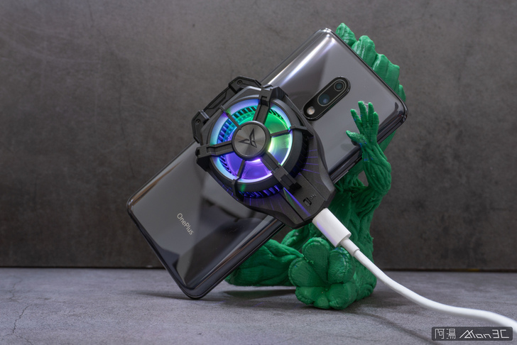 另外順便科普一下,這款手機散熱器原理與 ROG Phone 的散熱器不同。致冷晶片原理是通電後,製冷晶片一面會吸熱,也就是製冷;另一面則會放熱。蜂翼 2 Pro 將製冷的那端貼在手機上用來為手機降溫,放熱的那端用散熱片以及風扇,將熱散出,藉以達到降溫的目的。實際測量蜂翼 2 Pro 空載時的溫度,製冷的那側最低溫可達 5.5 度。