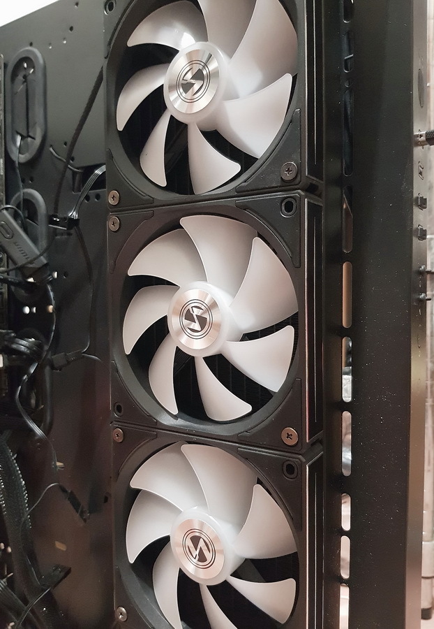 ▼ UNI FAN AL120 積木風扇 穩穩的鎖上 水冷排。