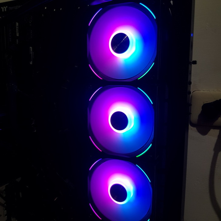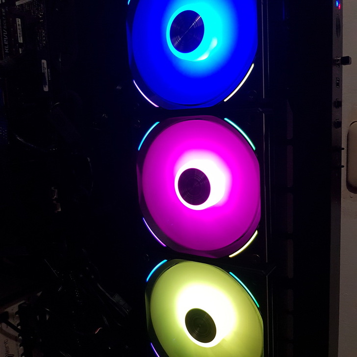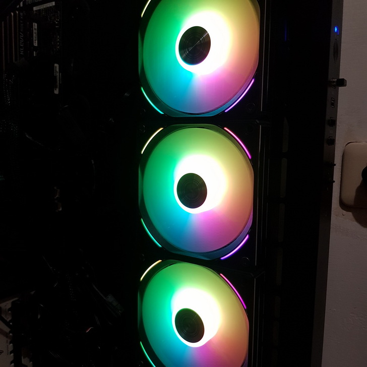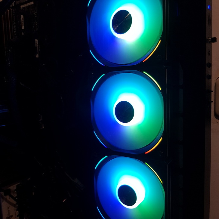 ▼ 開機後 UNI FAN AL120 會先依照預設的 彩虹燈效 發光。