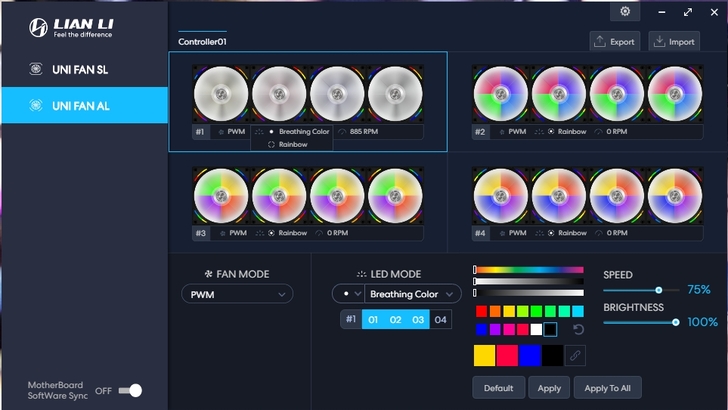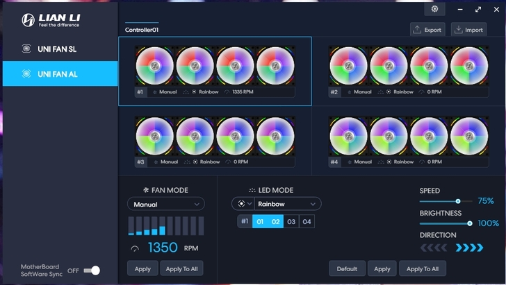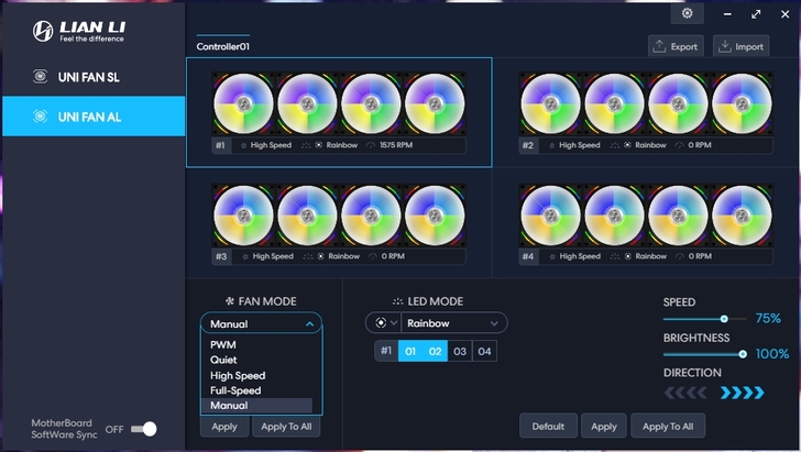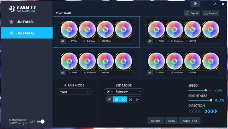 ARGB控制器 透過軟體 L-Connect-2,讓人很直覺的調整 燈效模式與風扇模式,主機板有支援的話也可跟主機板同步,只是軟體介面的語系,就等官方更新了。