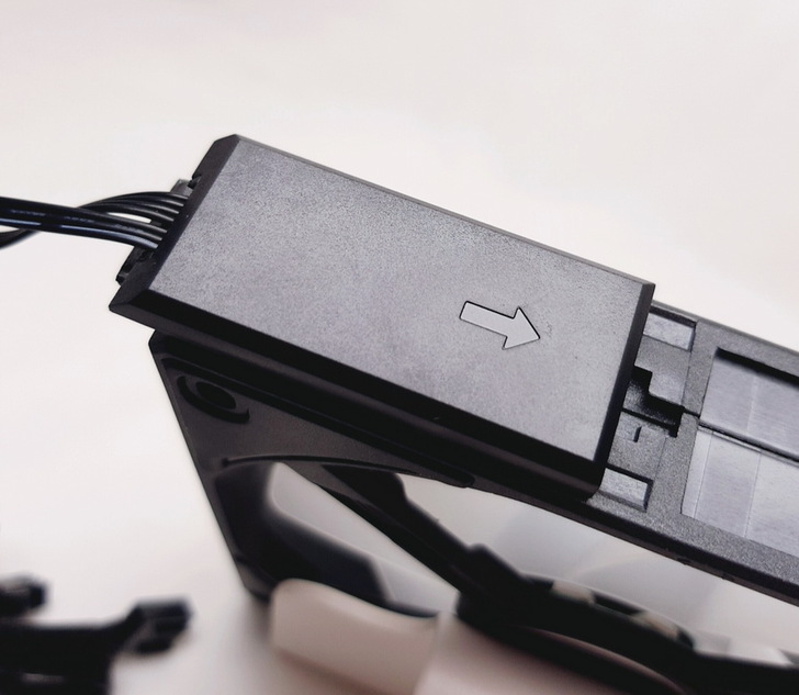 ▼ 只需要一條 風扇訊號連接線,給它扣上最上面的那顆風扇,就可以控制這三顆風扇。
