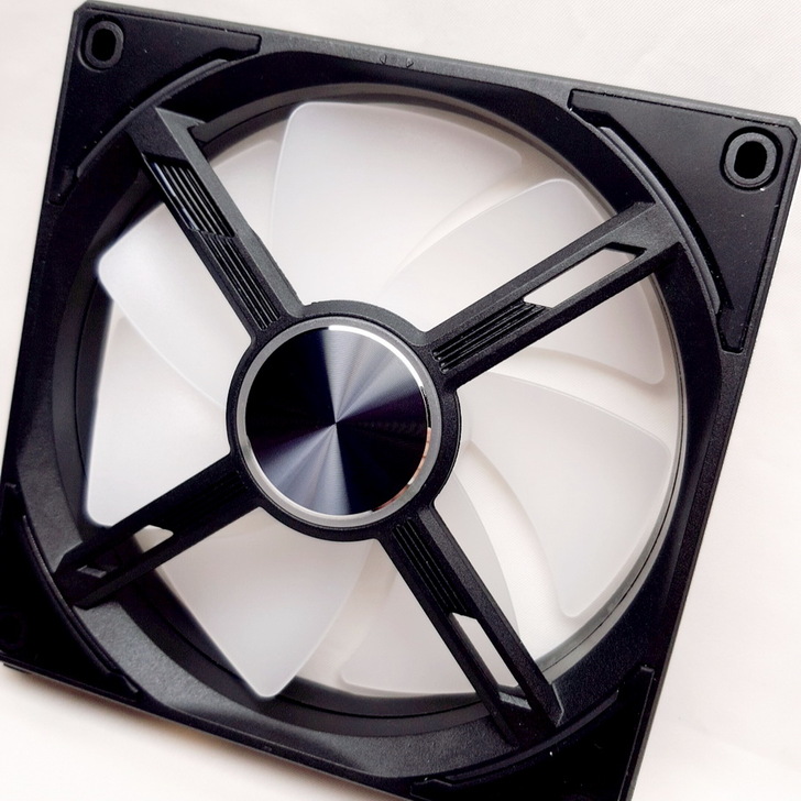 ▼ 風扇正面可以看到斗大的白色扇葉,四個邊框的減震橡膠墊。