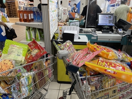 圖說:中元節家樂福獻出年度大優惠,結帳櫃檯看到消費者採買的品項及數量有明顯增加。
