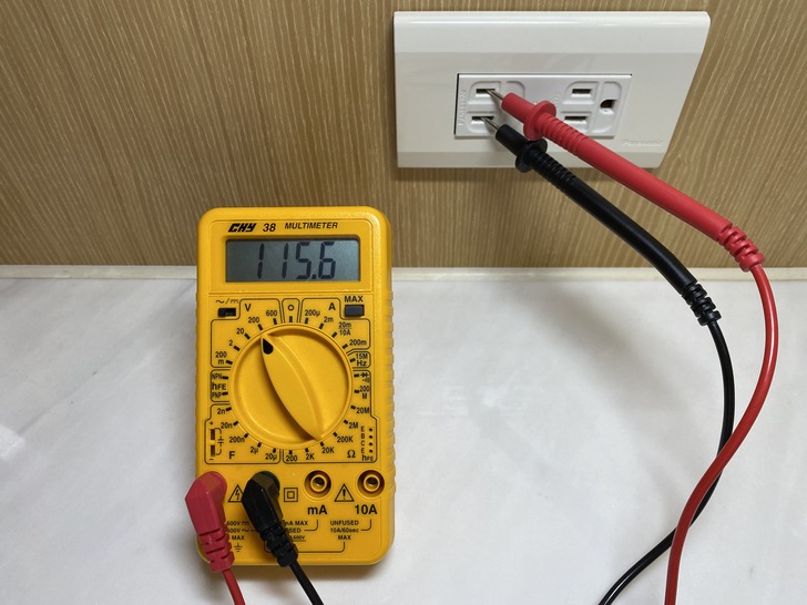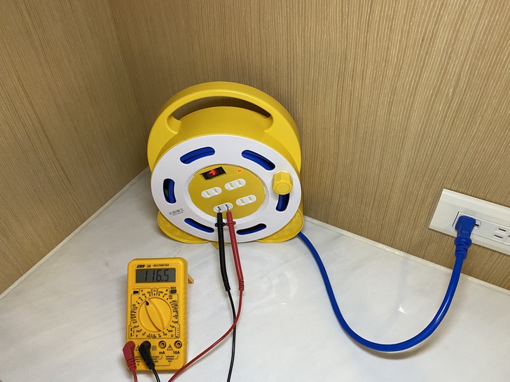 測出116.5 V 比市電還略高1V