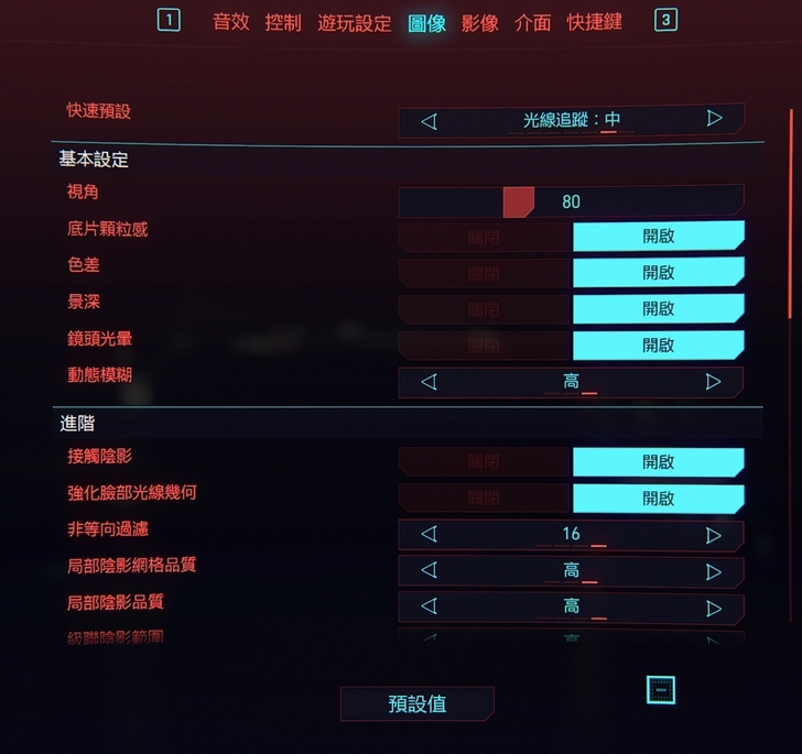 Cyberpunk 2077 (2560x1440) 高(未開光追) 60張上下