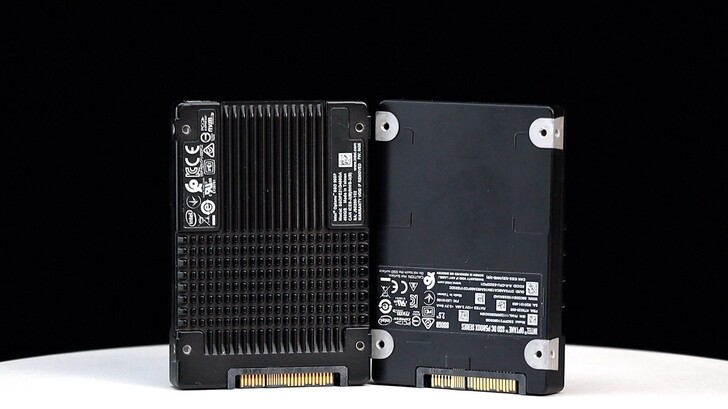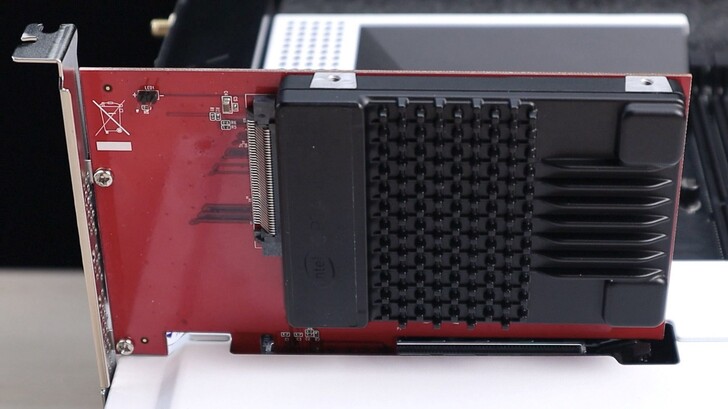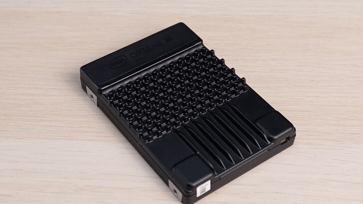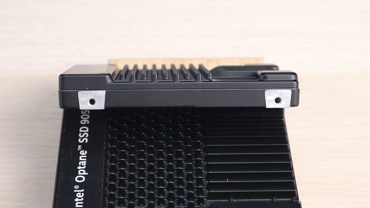 這顆是 Intel Optane SSD DC P5800X,容量是 800GB。採用 U.2 傳輸接頭。一般家用很難看到這個規格,這主要是設計給伺服器使用的。先來看一下外觀,其實就是 2.5” 的大小,厚度 15mm,比大家常見的 7mm,或是以前常見的 9mm 還厚一點。上下外殼應該都是鑄造後 CNC 加工的,非常堅固,上面的小鰭片也非常硬。之前還沒裝到電腦上,跟 905P 放在一起,外觀太像,導致常常會拿錯。