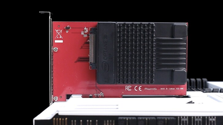 轉接上,使用 PCIe 轉 U.2 的轉接卡,這個一張大概一千原左右。上面沒有晶片,就是單純的拉線而已,所以 Gen3、Gen4 的都可以通用。