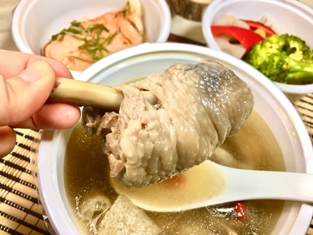 像是雞湯的話都給大塊雞腿肉,還好幾塊這樣