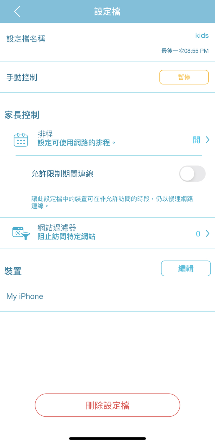 ▼在家長控制的頁面可控制孩童上網時間管理 避免孩童超時上網及瀏覽不良網站