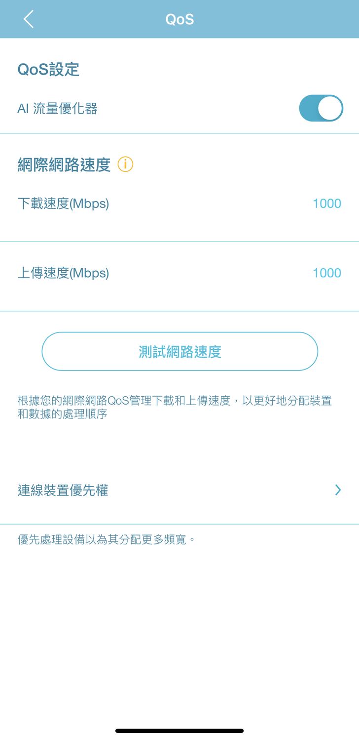 ▼連線裝置優先權的頁面可以將主要與重要設備的優先順序調整 避免其他裝置佔用頻寬