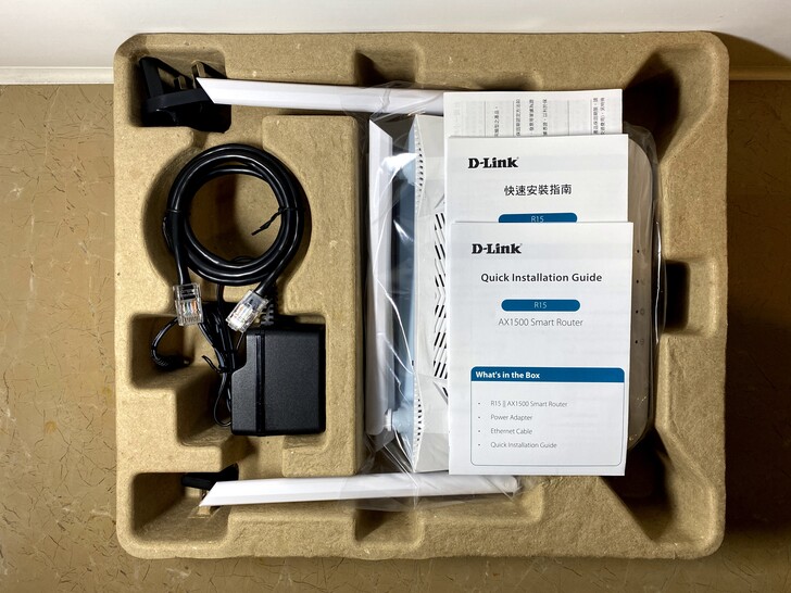 ▼盒內有R15本體、12V 1A變壓器、網路線以及中英文說明書