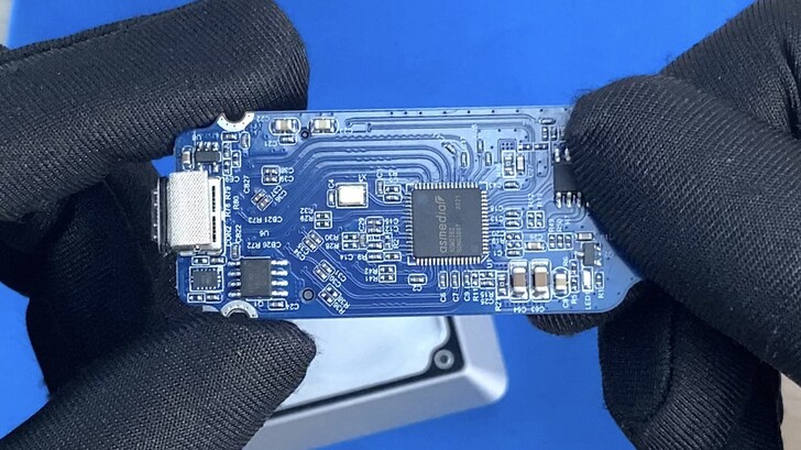板子做到非常小,採用的轉接方案為 ASMedia ASM2362。在 USB-C 部份有防水膠圈。