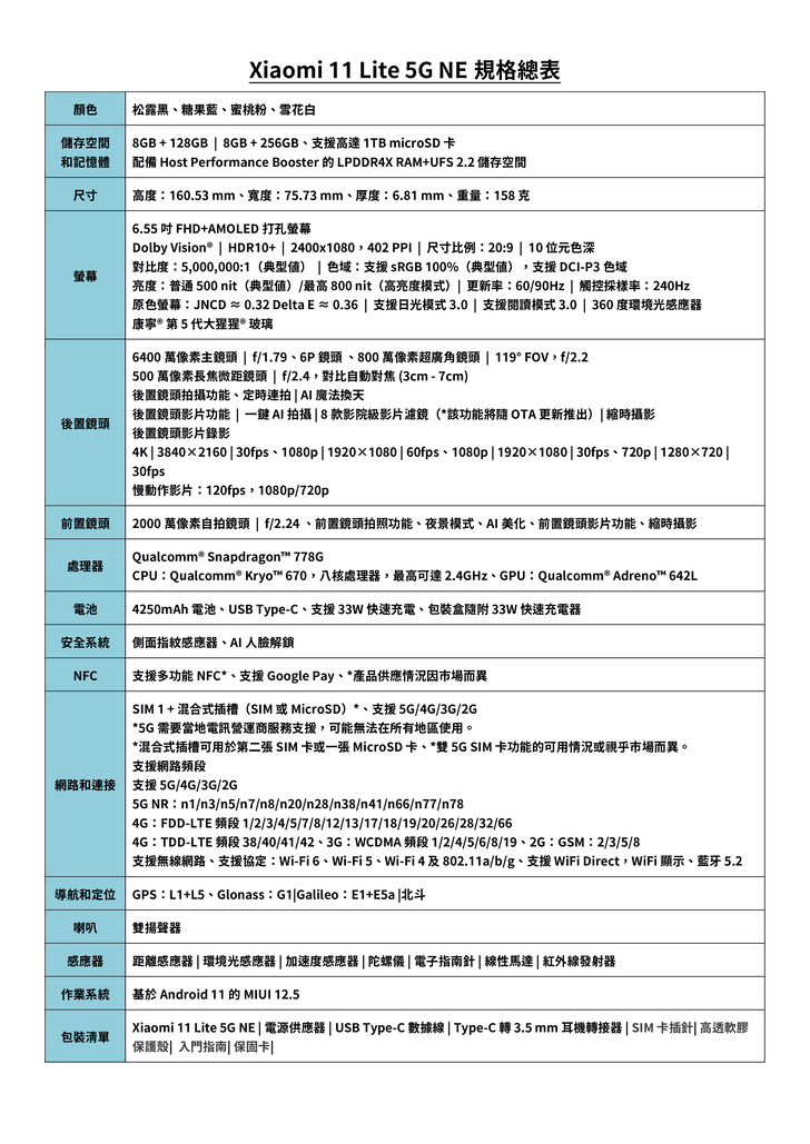 Xiaomi 11 Lite 5G NE輕潮時尚 5G超前位