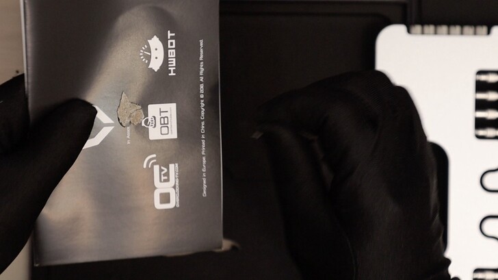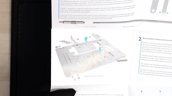 說明書放置在裸測架下,包裝有對應的凹槽放置。不過背面似乎是為了固定而有用膠,而包裝內部也是紙質,因此拿起來的時候就會有痕跡。